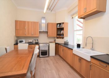 Kitchen 4.88m x 3.72m Double glazed window. Vinyl flooring. Range of fitted base and wall units with ample worktop surfaces, double bowl Belfast sink. Space for free standing cooker and dining table. Extractor hood. Drying pulley. Built-in corner cupboard. Smoke detector. Broadband point. Radiator. Ceiling light.