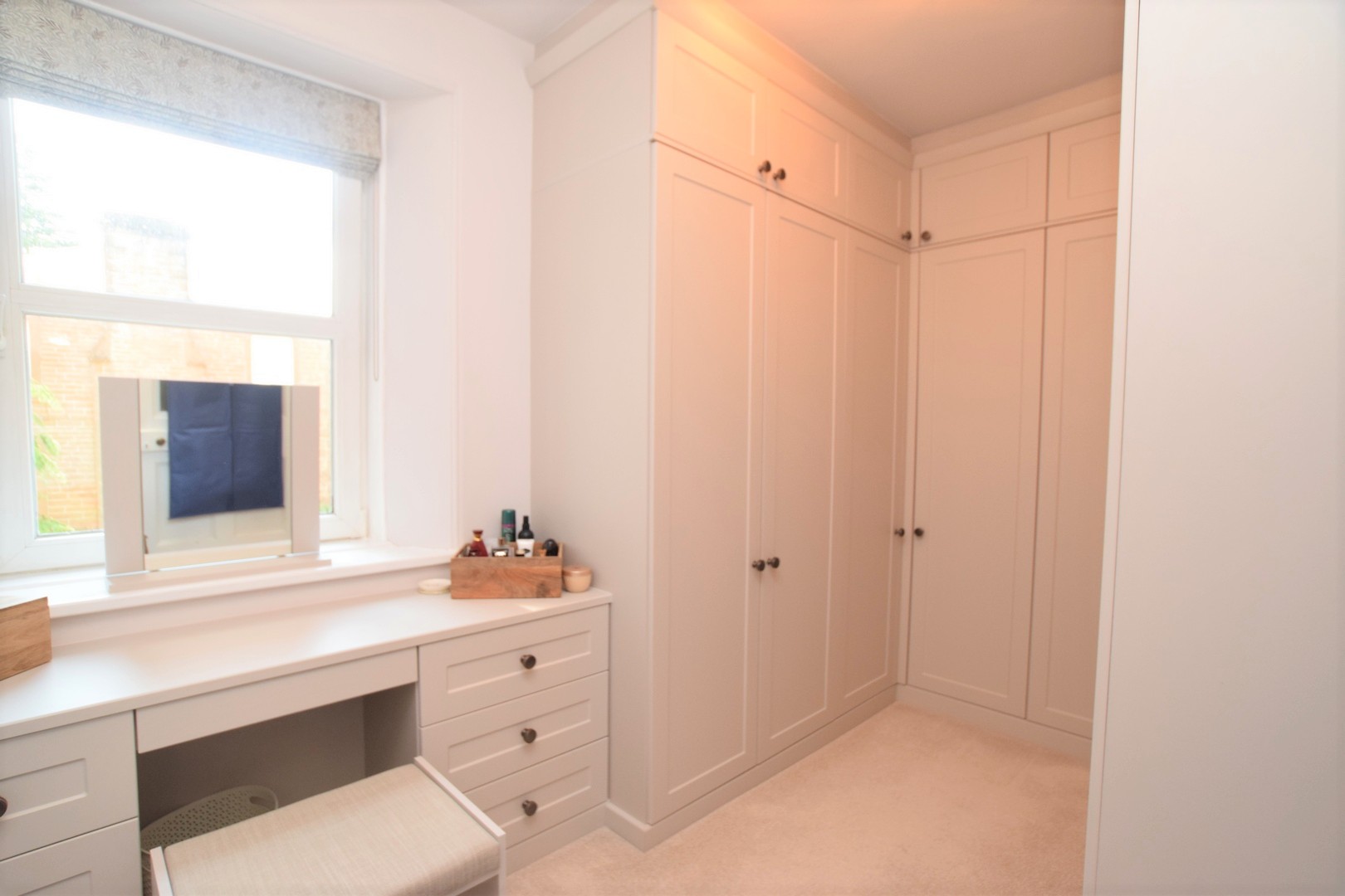 Dressing Room 3.17m x 2.60m Double glazed window. Fitted carpet. Bespoke fitted wardrobes and dressing table. Radiator. Ceiling light.