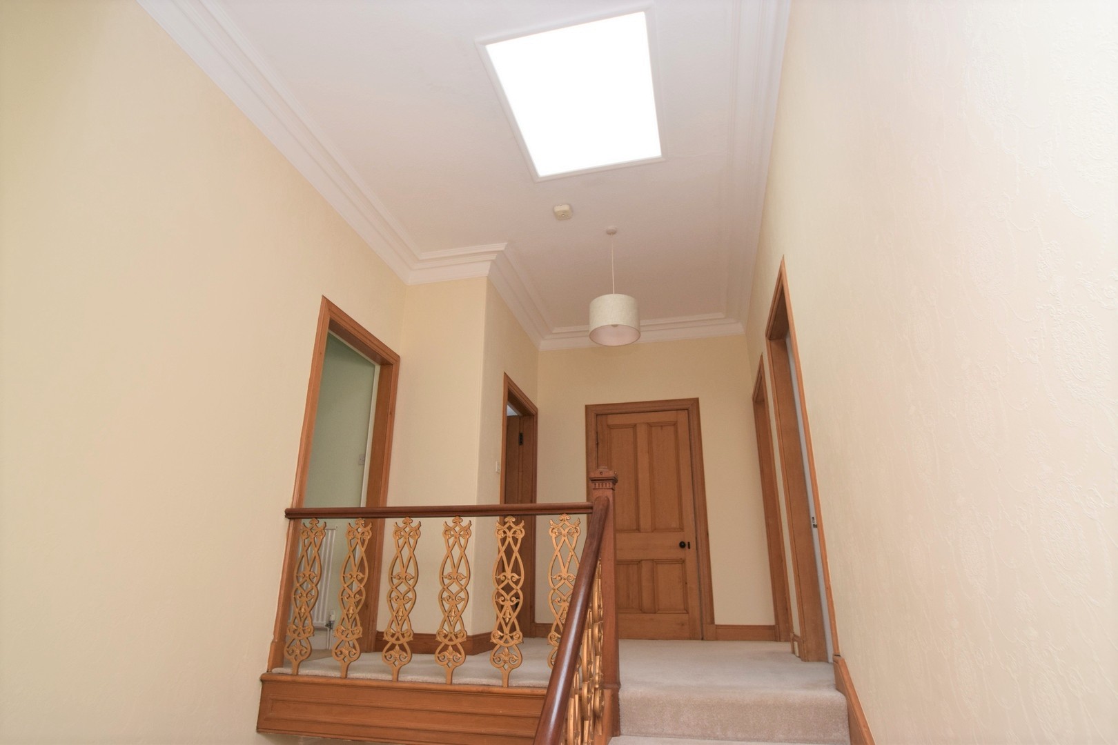 Landing 7.90m x 2.92m Double glazed Velux window. Fitted carpet. Built-in cupboard.