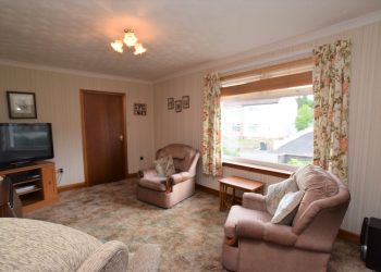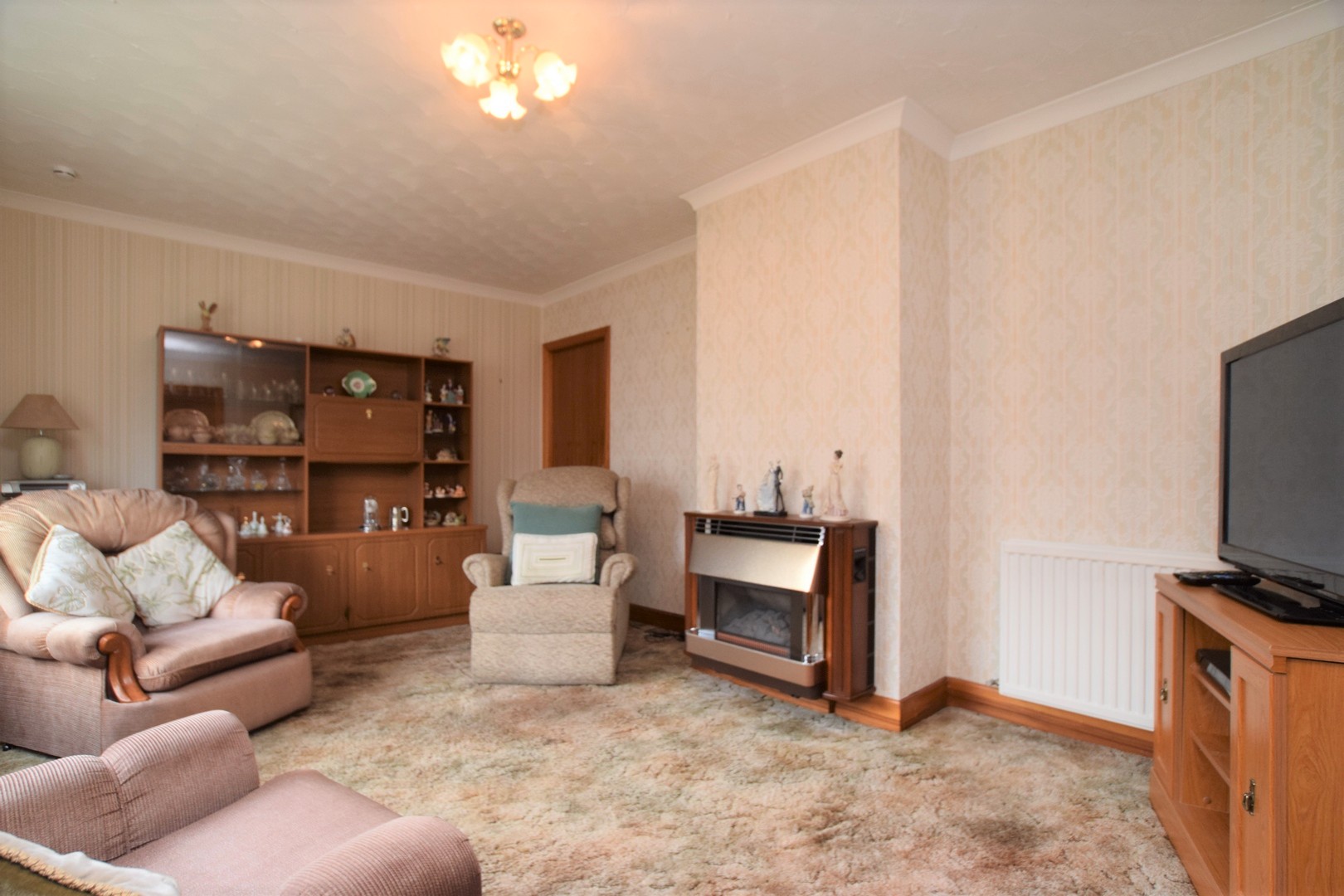 Double glazed windows with fitted blinds and curtains. Fitted carpet. Feature fireplace with back boiler for central heating. Tv point. Radiator. Ceiling light.