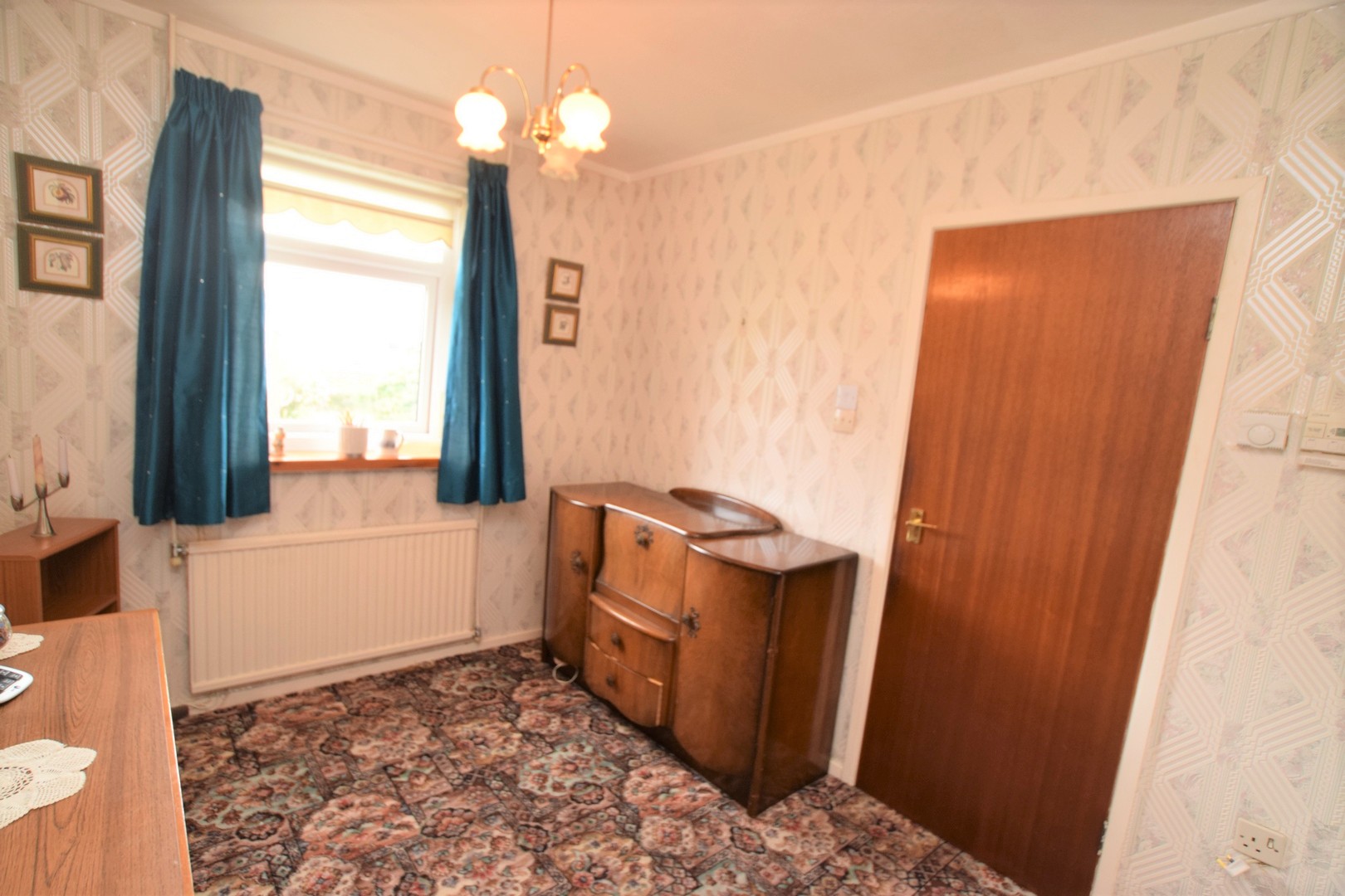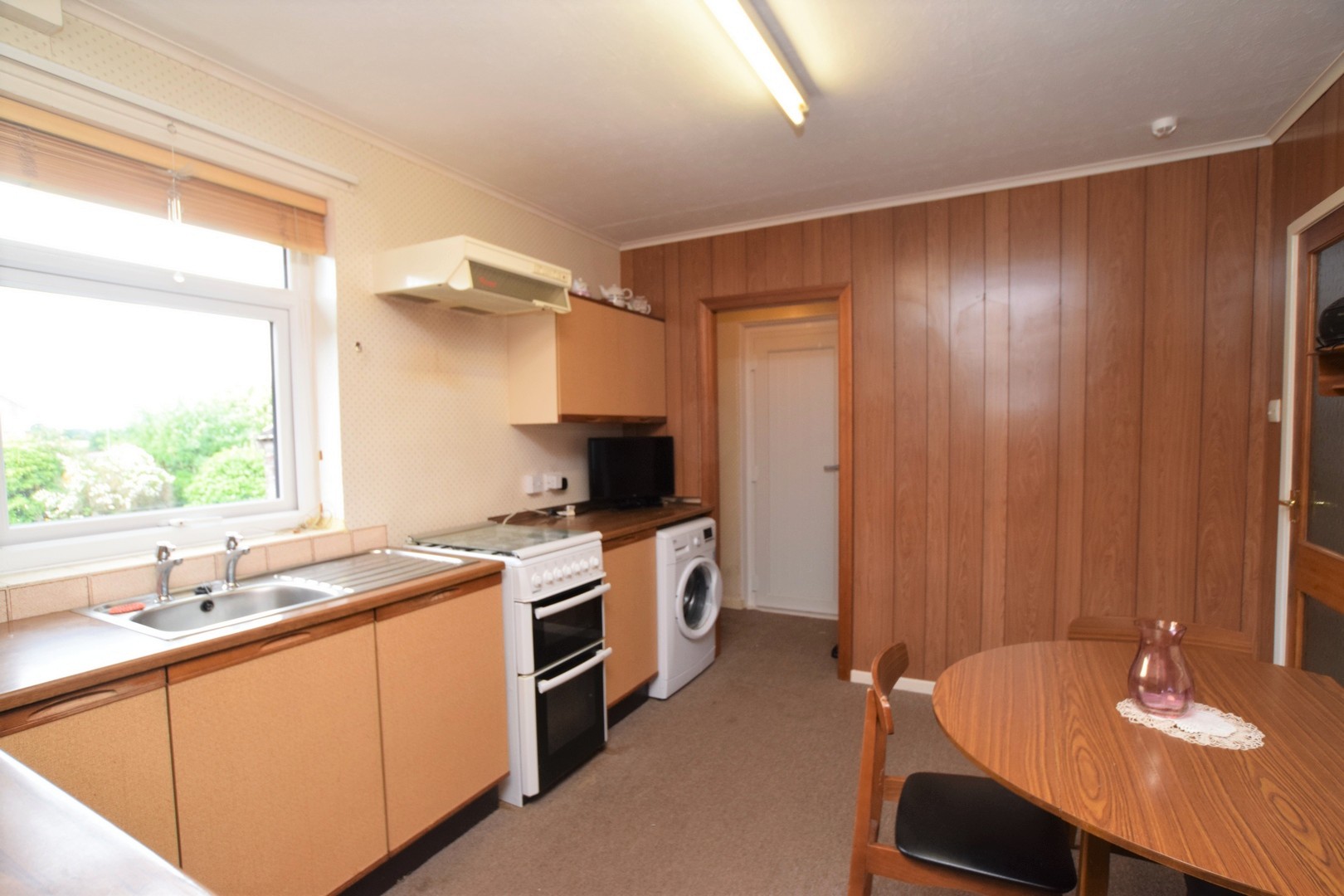 Double glazed windows with fitted blinds. Fitted base and wall units with ample worktop surfaces. 4 Burner gas hob, oven and grill. Space for washing machine and fridge freezer. Tv point. Extractor fan. Door to garage. Radiator. Ceiling light.