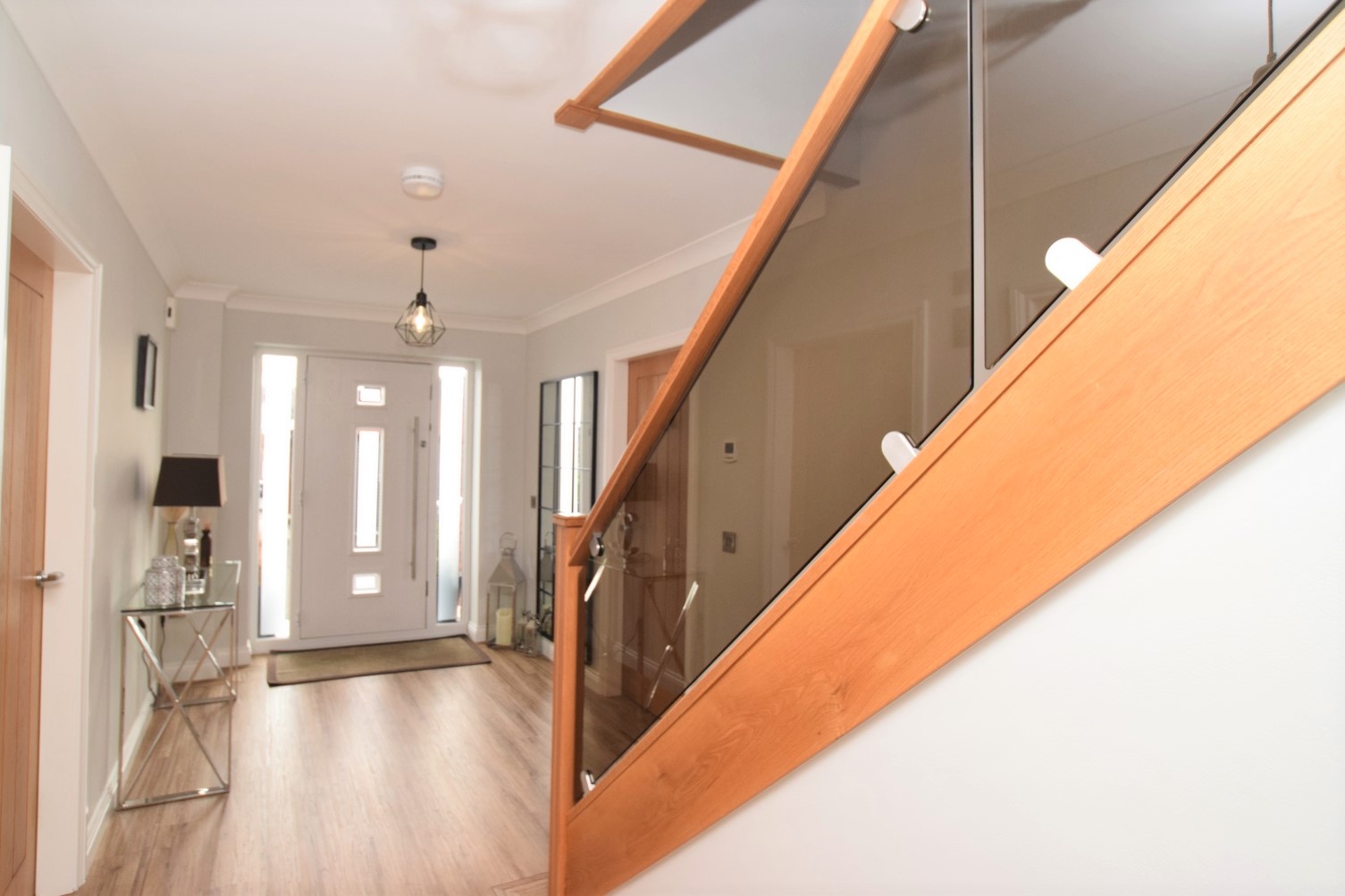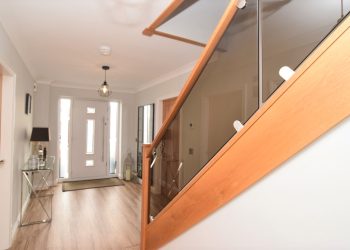 Hall 6.00m x 2.30m Composite entrance door with double glazed side panels. Karndean flooring with under floor heating. Glass balustrade staircase to first floor. Heating thermostat. Smoke detector. Ceiling lights.