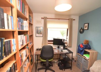 Double glazed windows. Fitted carpet. Cupboard. Fitted book shelves. Radiator. Ceiling light.