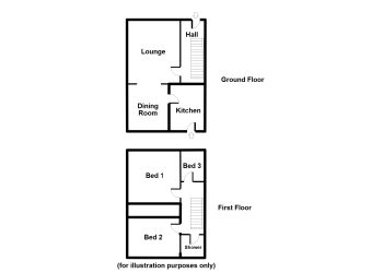 Ground Floor: Hallway, Lounge, Dining Room, Kitchen. First Floor: Landing, Bedroom 1, Bedroom 2, Bedroom 3, Shower Room.
