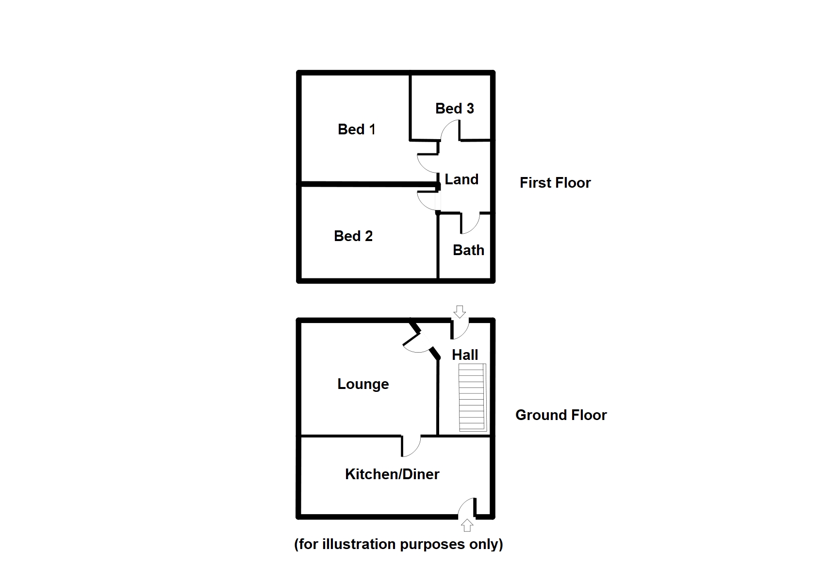 Ground Floor: Entrance Hallway, Lounge, Kitchen/Diner. First Floor: Landing, Bedroom 1, Bedroom 2, Bedroom 3, Bathroom.
