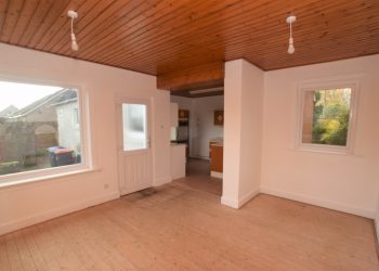 Dining Room 3.84m x 3.58m Double glazed windows and double glazed door to rear garden. Wooden flooring. Corner base unit. Wall mounted heater. Radiator. Ceiling lights.