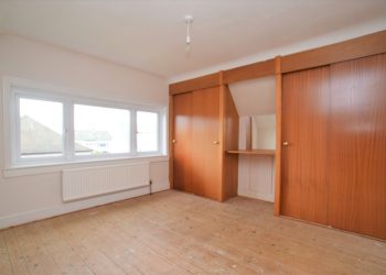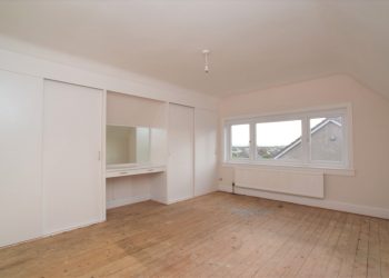 Bedroom Three 3.85m x 3.41m Double glazed windows with fitted curtains. Bespoke fitted wardrobes with dressing table and mirror. Wooden flooring. Fitted cupboard with shelving. Radiator. Ceiling light.