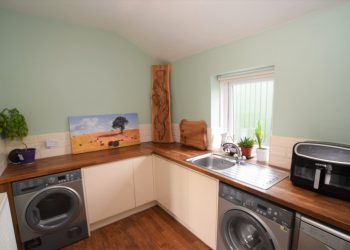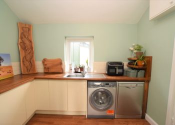 Utility Room 3.52m x 2.85m Double glazed window with fitted roller blind. Karndean flooring. Fitted base units with ample worktop surfaces. Stainless steel sink. Space for washing machine, tumble dryer and dishwasher. Part tiled walls/splashback. Radiator. Ceiling light.