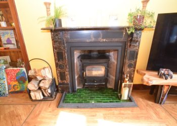 Lounge 4.90m x 3.78m Double glazed sash and case windows with fitted roller blind. Karndean flooring. Tv point. Feature fireplace with 11kW Clearview log burning stove. Bookshelves. Radiator. Ceiling light.